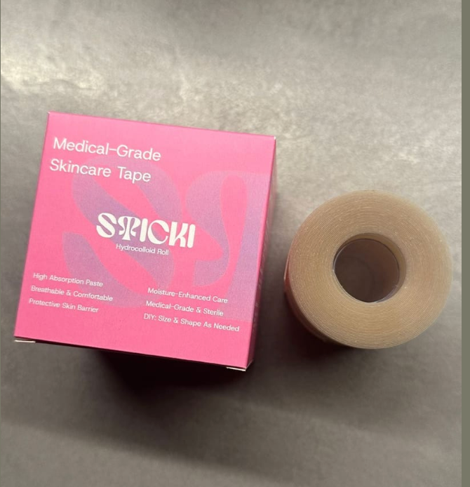 STIKKI is a medical-grade hydrocolloid tape roll(16.4 feet long, 2 inches wide)that you can cut to any size. Use it as a custom pimple patch, spot cover, or gentle protective barrier for scrapes, bruises, and burns. Made with high-quality, skin-safe materials, it helps protect and maintain a clean surface while keeping skin comfortably covered. The ultra-thin, invisible finish blends seamlessly with your skin - comfortable for all-day wear and suitable for all skin types.